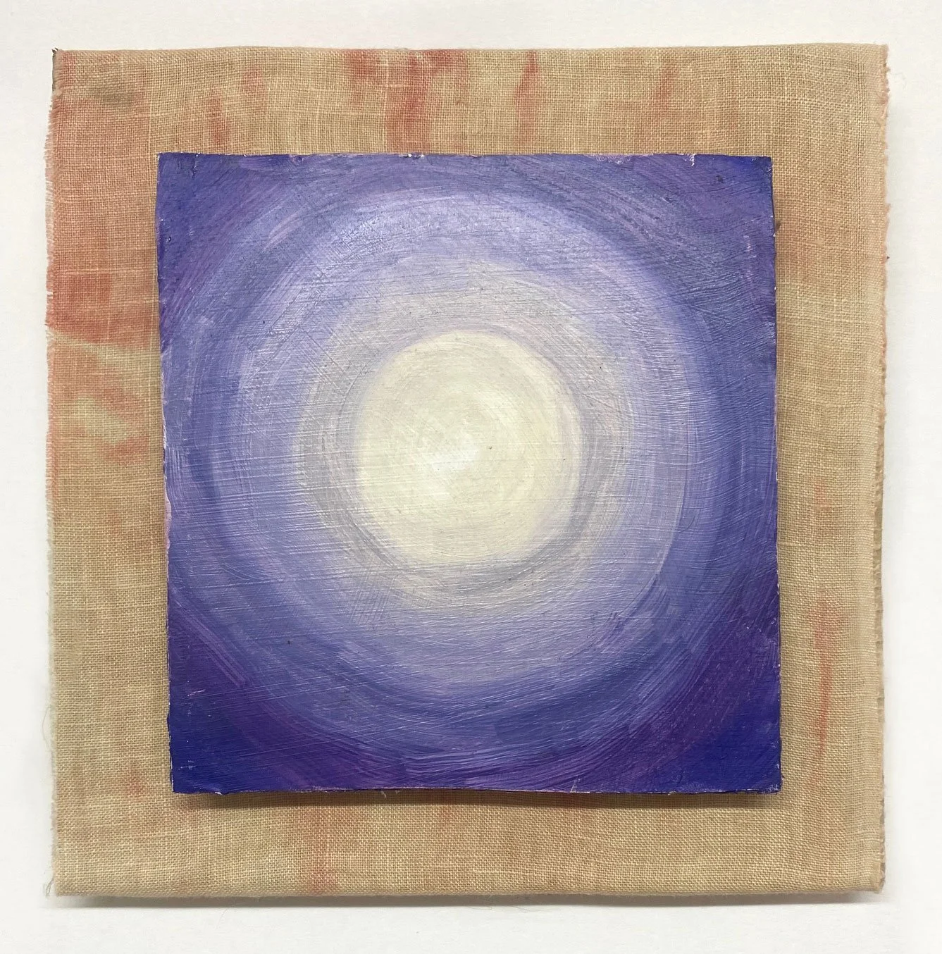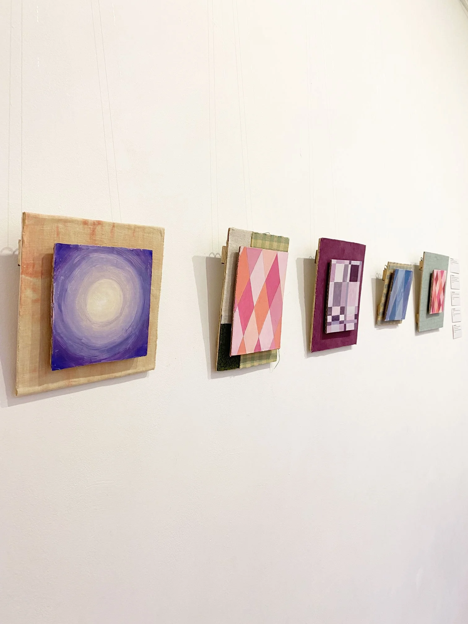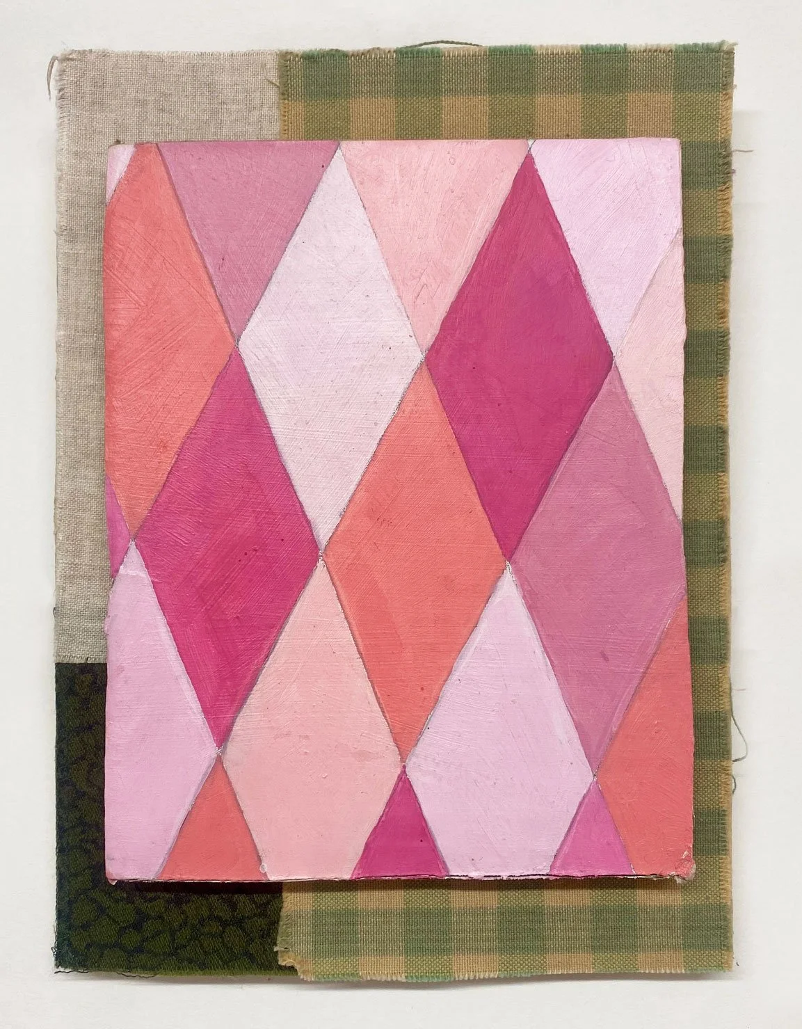 Oil on reused cardboard, fabric on found wood