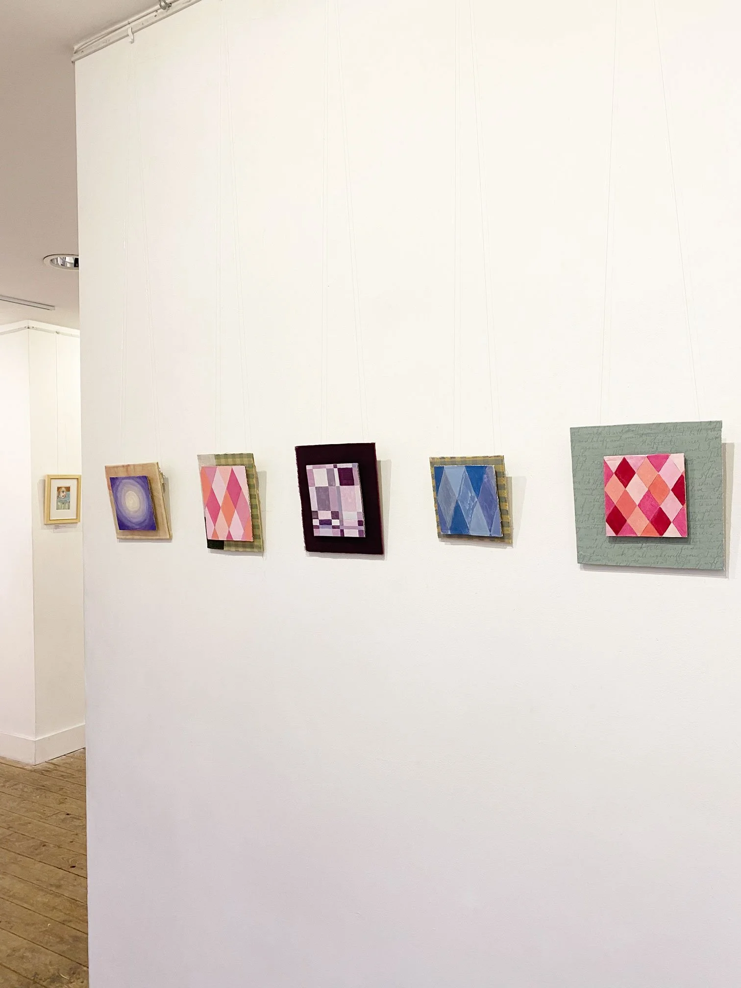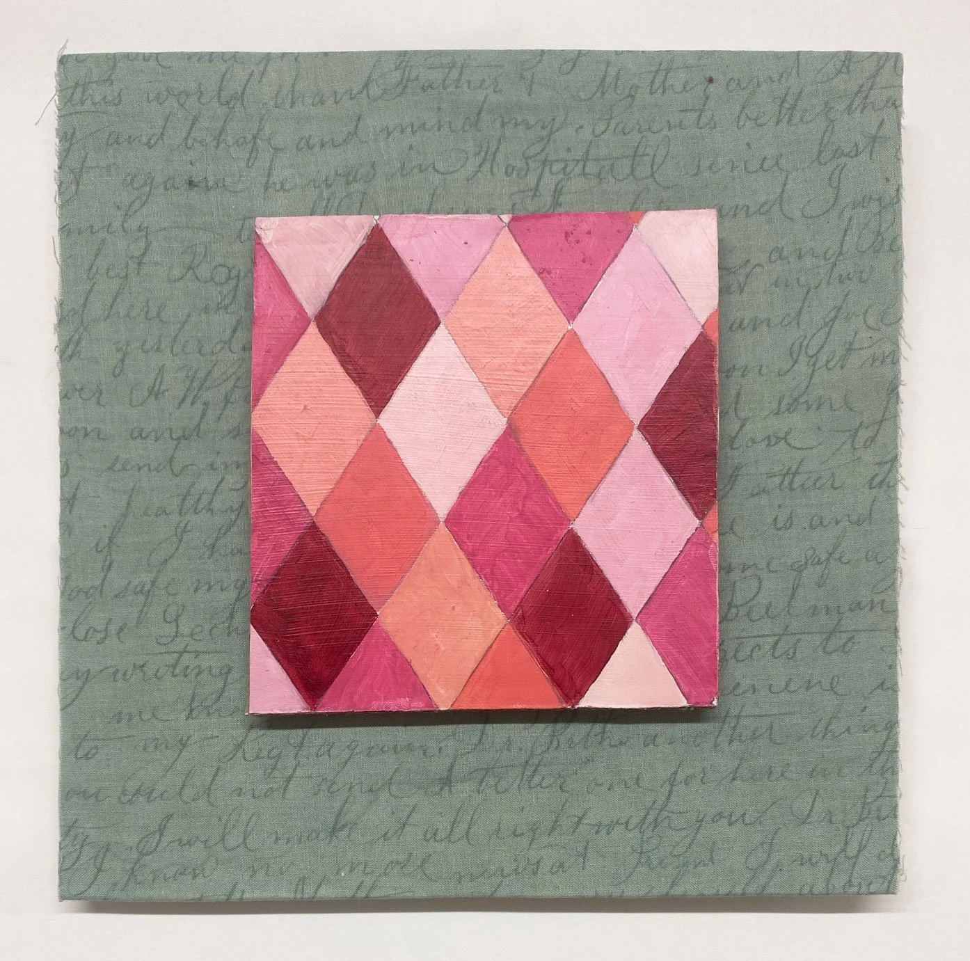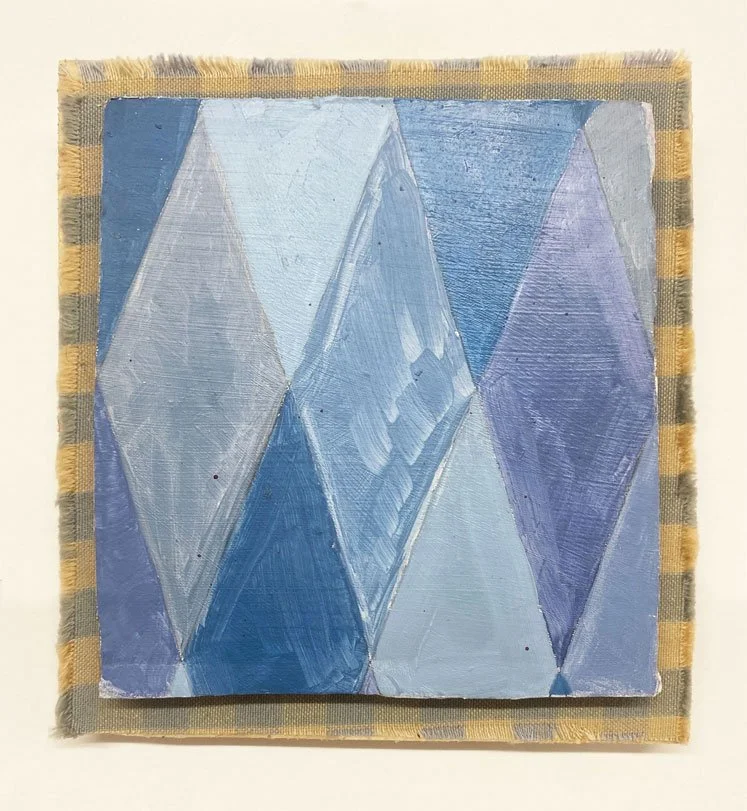 Oil on reused cardboard, fabric on found wood